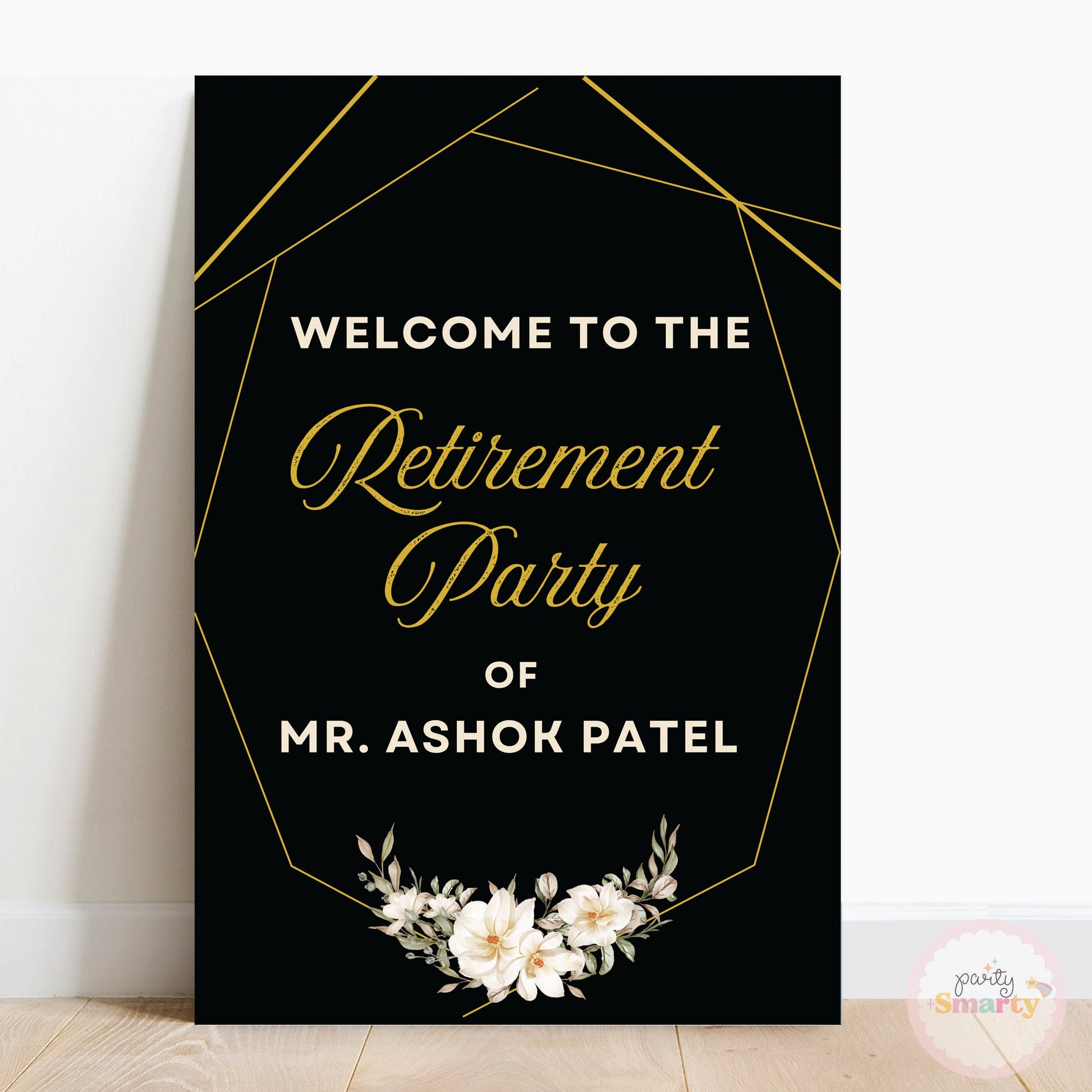 Black & Gold Elegant Retirement Party Welcome Board