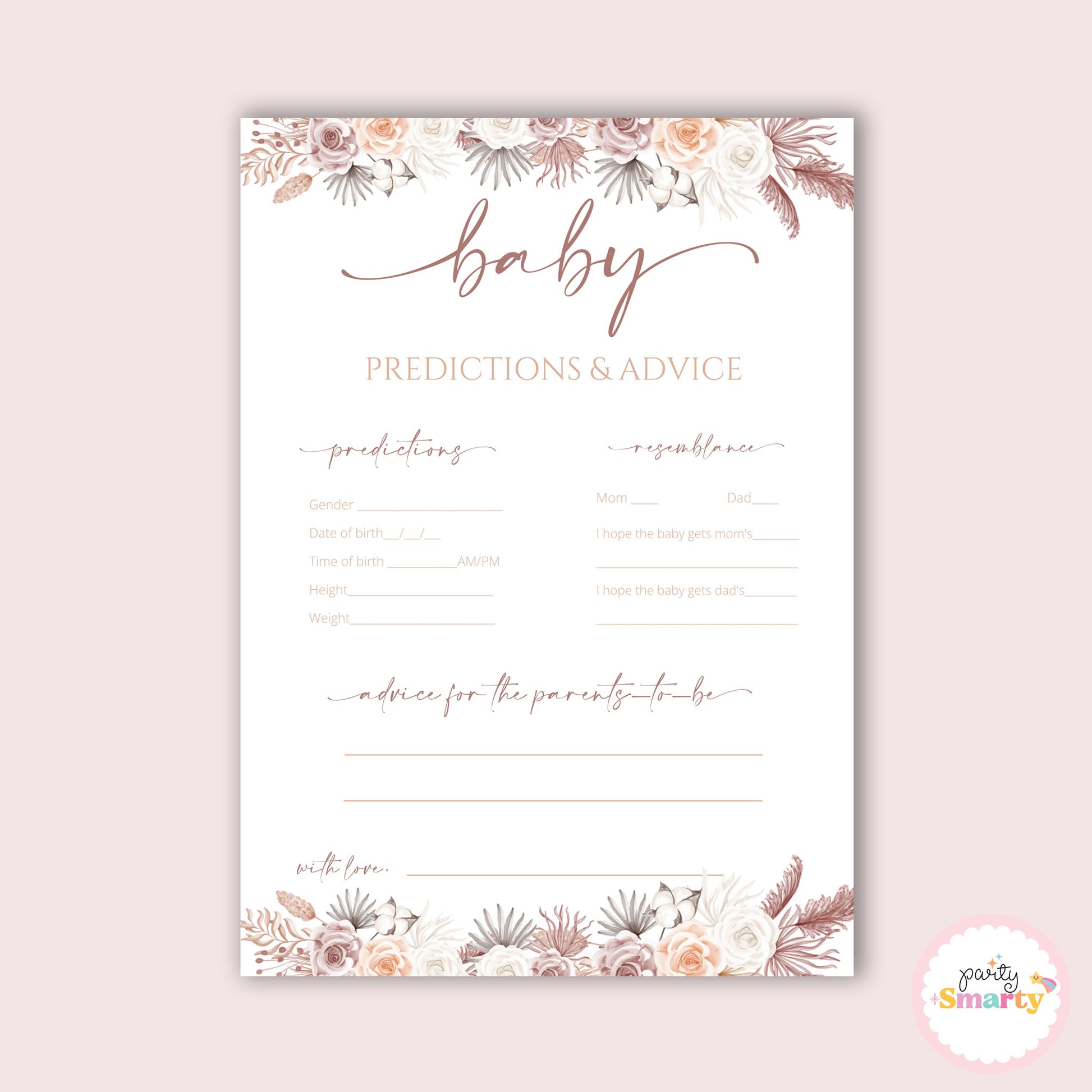 Boho Baby Shower - Advice & predictions game - Set of 10